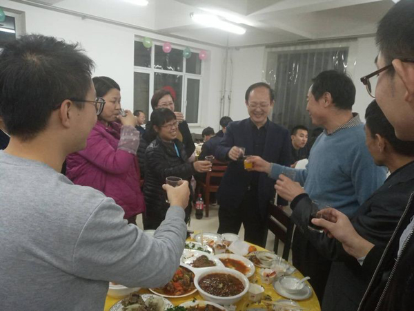 張永華總,大化來的高級高管,雖然膝蓋疼痛,但是為咱們員工端起餃子來,活力十足,一下年輕20歲。