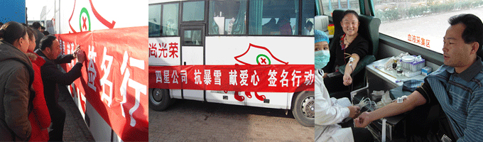 于2010年11月,河北省遭遇60年罕見(jiàn)的暴風(fēng)雪,相關(guān)地區(qū)受災(zāi)嚴(yán)重,一方群眾急需血液,但血庫(kù)供血告急,當(dāng)公司接到上級(jí)政府救援通知后,及時(shí)動(dòng)員全體職工無(wú)償獻(xiàn)血,奉獻(xiàn)愛(ài)心活動(dòng)。