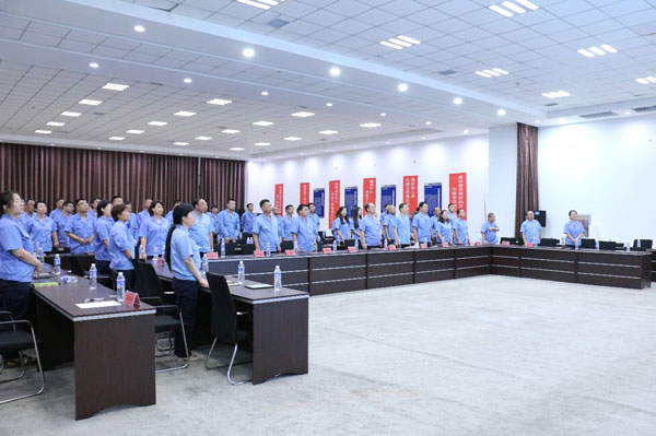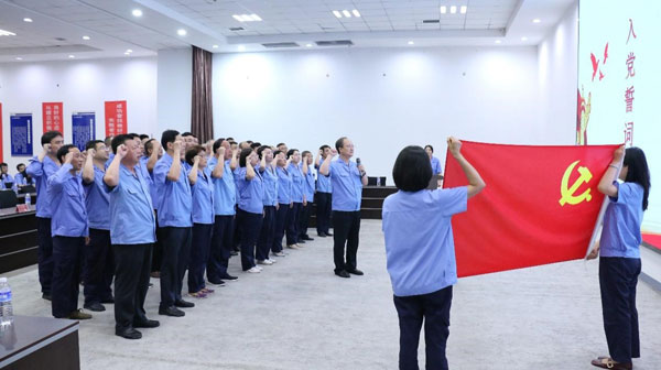(黨支部書記、董事長王煥一領誓) “起來,不愿做奴隸的人們……”在嘹亮而莊嚴的國歌聲中,大會正式開始。“我志愿加入中國共產(chǎn)黨,擁護黨的綱領,遵守黨的章程……”在公司黨支部書記、董事長王煥一領誓下,全體黨員重溫入黨誓詞,堅定有力的聲音響徹全場。