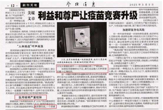 日前,《參考消息》一則“醫用玻璃嚴重短缺”的醒目標題,引起了筆者的注意。文章中,世界首富比爾蓋茨指出說,“一個普通但至關重要的部件——醫用玻璃出現了嚴重短缺”,“如果醫用玻璃供應不足,就無法運輸人們所需要的數十億疫苗”。據了解,文章中所提到的“醫用玻璃”指的就是中性硼硅玻璃。