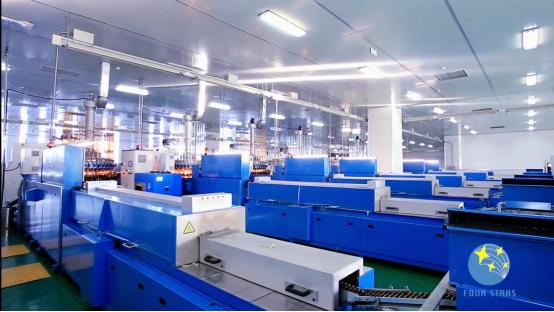 目前,四星玻璃擁有四座中性硼硅玻璃窯爐、12條拉管生產線,20臺進口立式安瓿機和200臺西林瓶機。現年產20億支生物疫苗用的玻璃瓶及抗生素瓶瓶和安瓶、3萬噸中性硼硅玻璃管,已經出口20多個國家。為了滿足新型冠狀病毒疫苗的需求,正在積極籌劃,迅速擴大產能,計劃在2021年年底前,增加10億支疫苗用玻璃瓶和2萬噸中性硼硅玻璃管的產能。建成投產后,四星玻璃將實現5萬噸中性硼硅玻璃管、50億支生物疫苗用玻璃瓶的生產加工基地,為我國注射劑仿制藥一致性評價及新冠病毒等疫苗產品的包裝做出應有的貢獻,提供有利的保障!